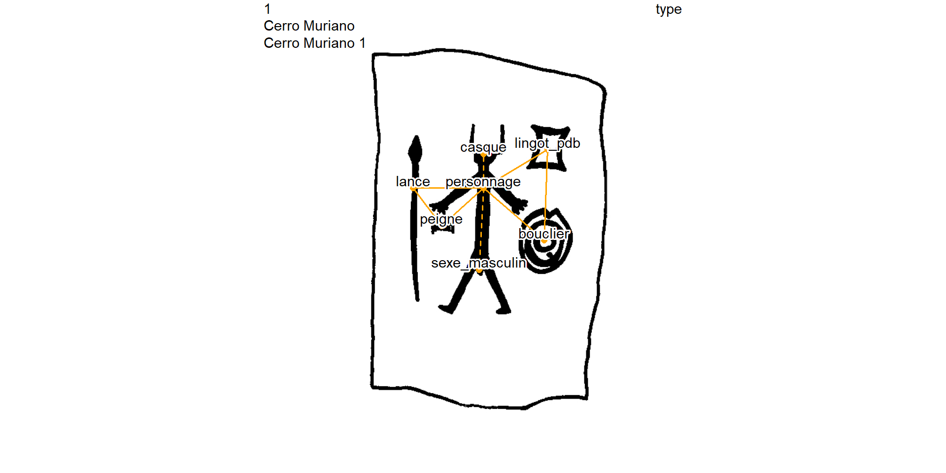 [7] "fibule-=-miroir" "fibule-=-peigne" "lance-=-miroir"