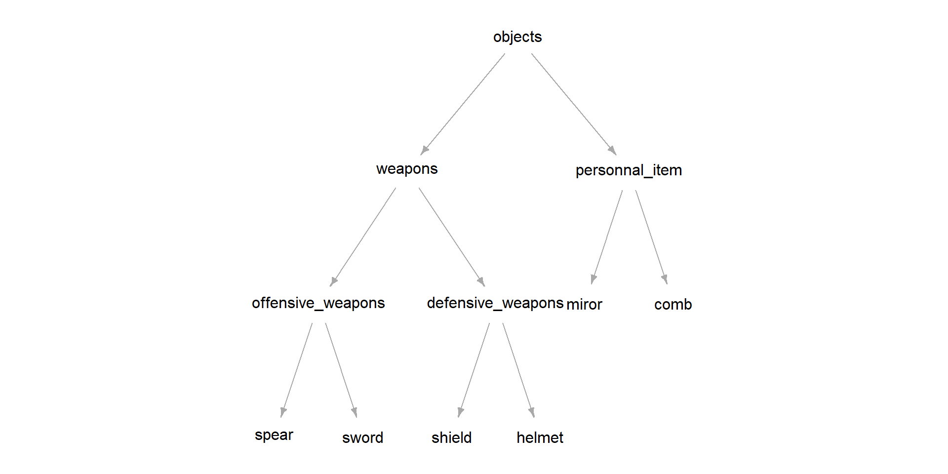 [1] "bouclier-=-epee" "bouclier-=-fibule" "bouclier-=-lance"