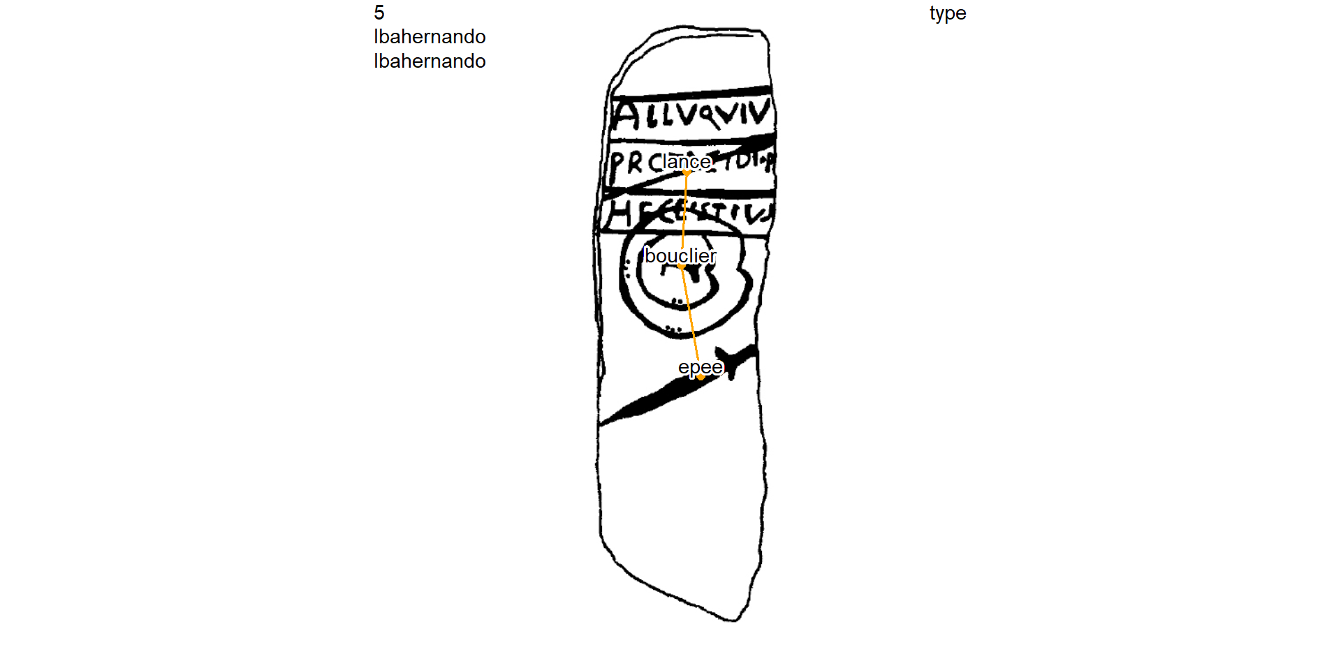 [4] "bouclier-=-miroir" "bouclier-=-peigne" "fibule-=-lance"